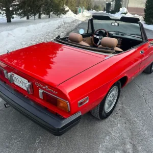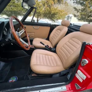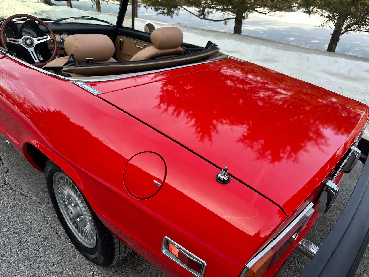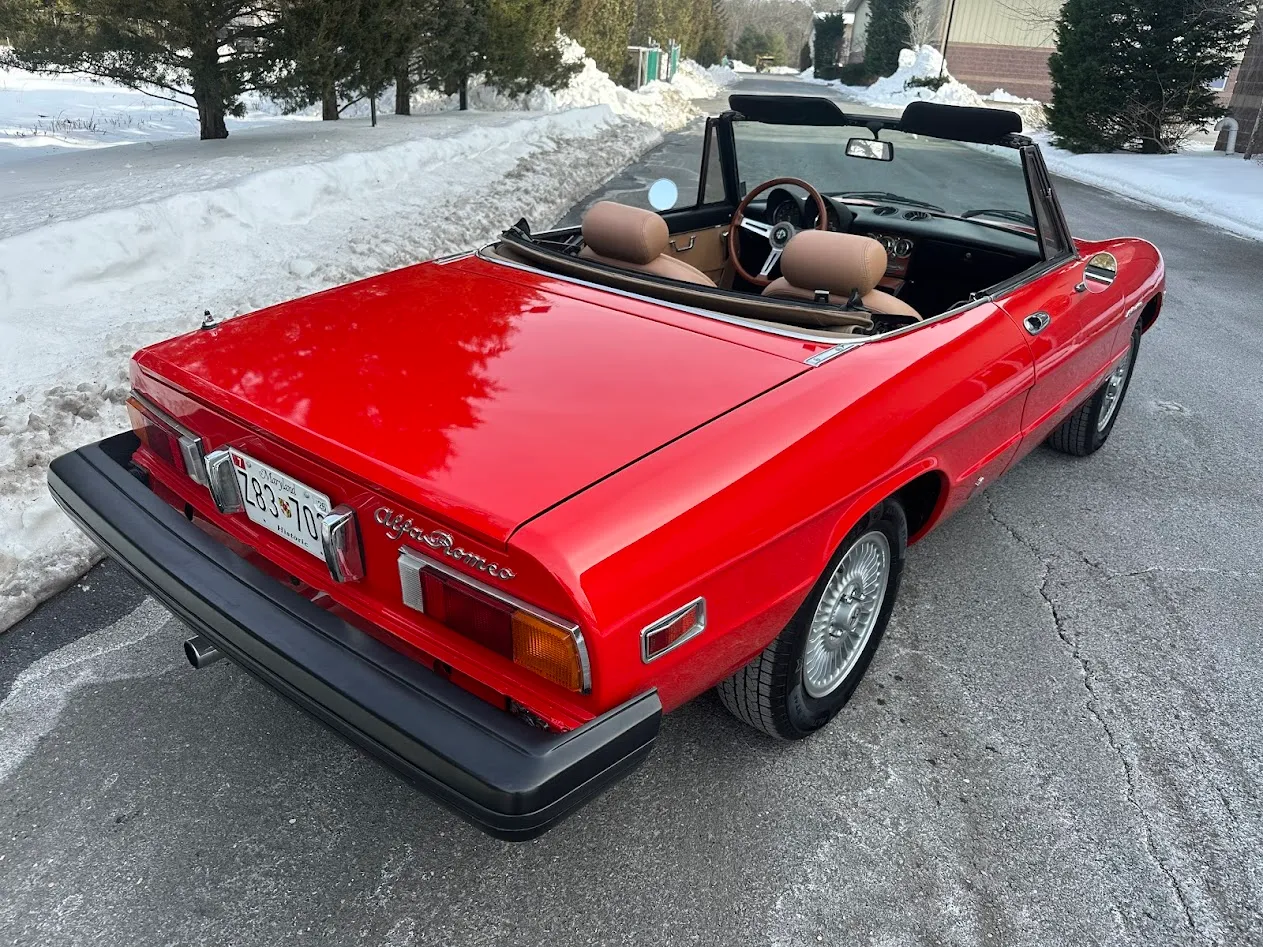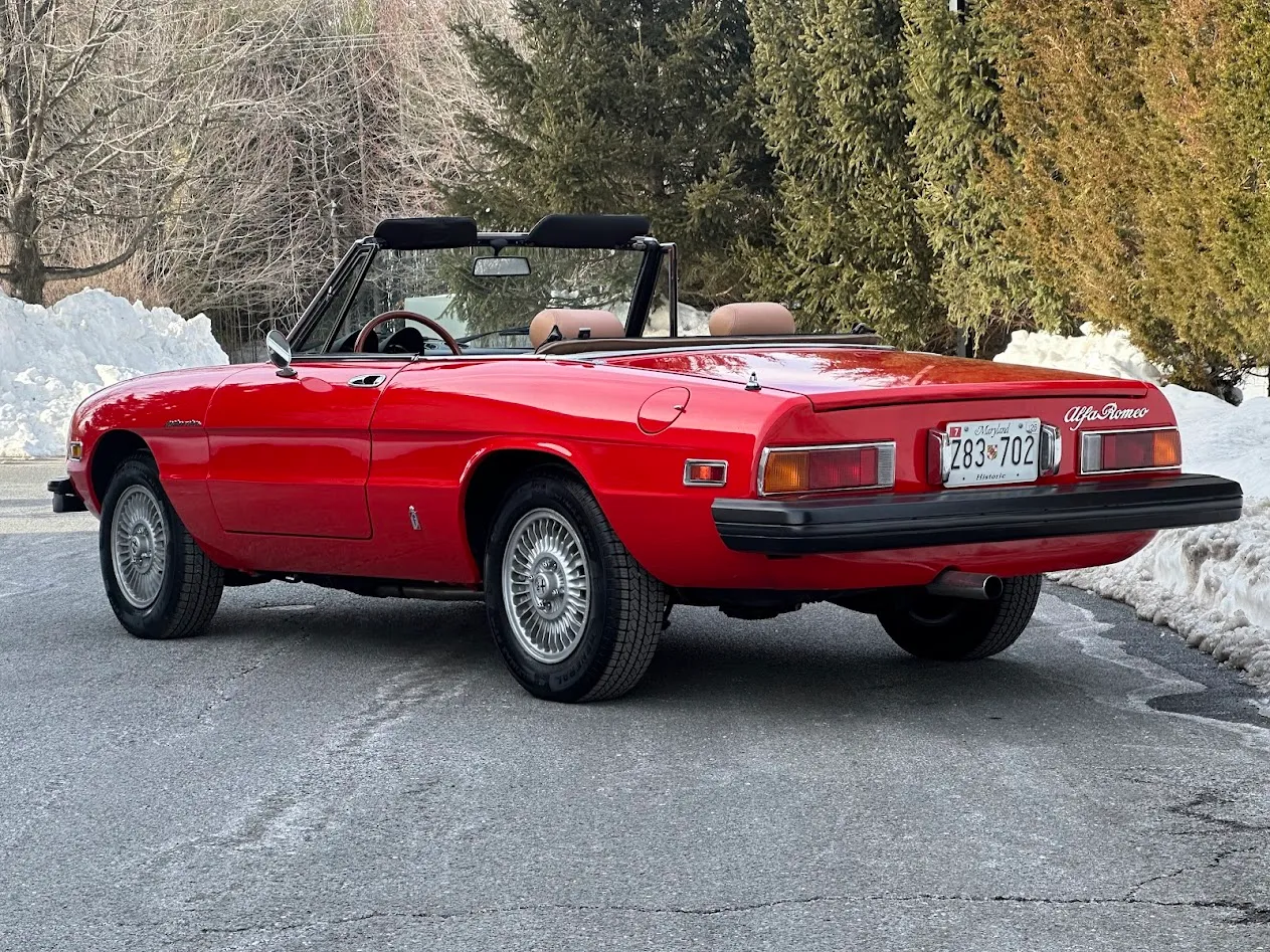 This 1981 Alfa Romeo 2000 Spider Veloce underwent a multi-year refurbishment under previous ownership and was acquired by the current owner in 2015. Finished in Rosso over Biscuit leather, the car is powered by a 2.0L twin-cam inline-four linked to a five-speed manual transmission and a limited-slip differential. Equipment includes a tan soft top as well as SPICA mechanical fuel injection, a Darstan tubular header, a Magnaflow muffler, KYB dampers, disc brakes, 14″ Campagnolo magnesium wheels, headlight covers, black bumpers, a cabin heater, a VG Hellebore steering wheel, and power windows. This Spider is offered at no reserve on dealer consignment in New Jersey with parts and service invoices and a clean Maryland title.
