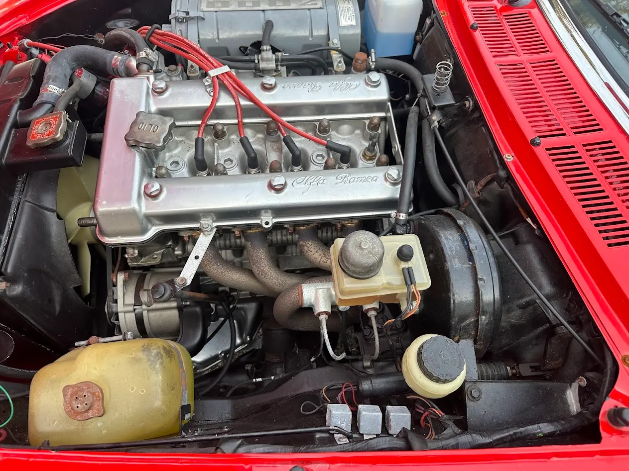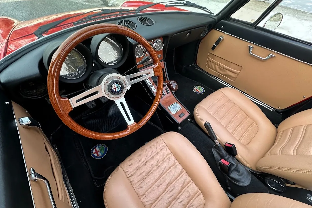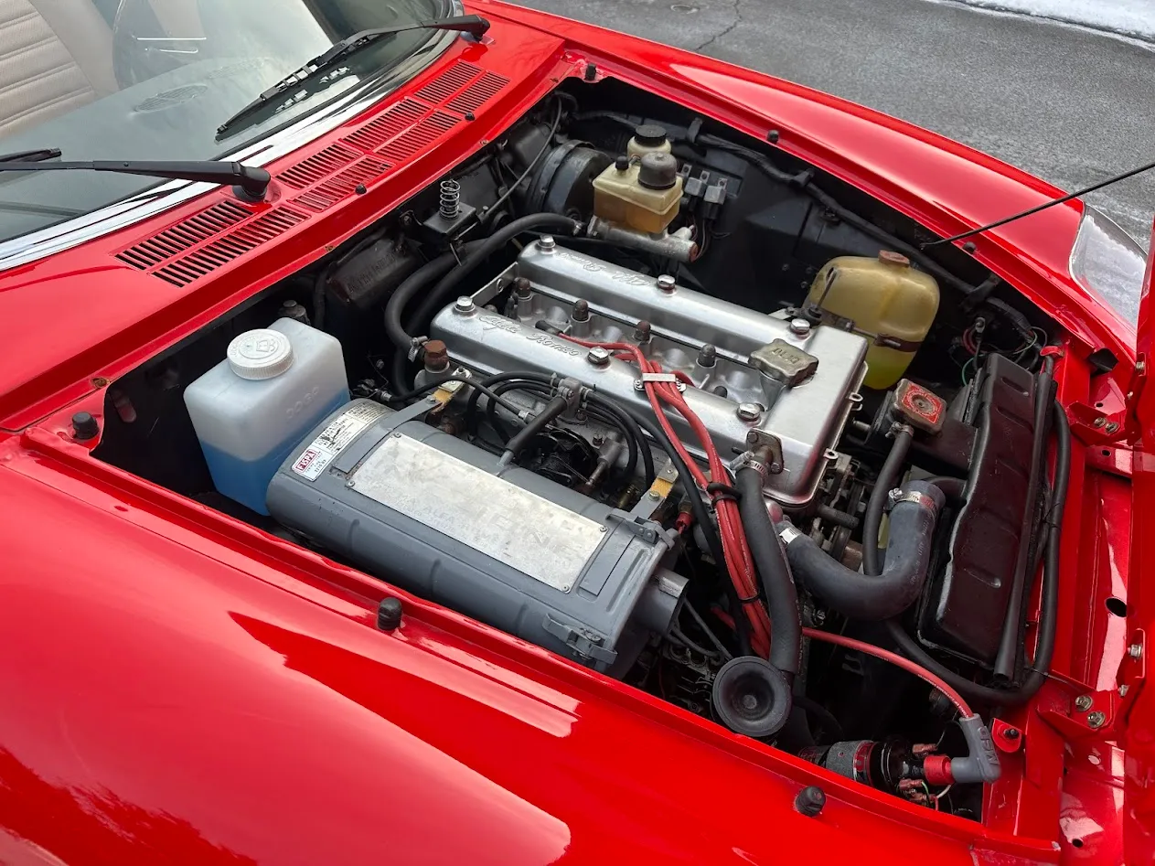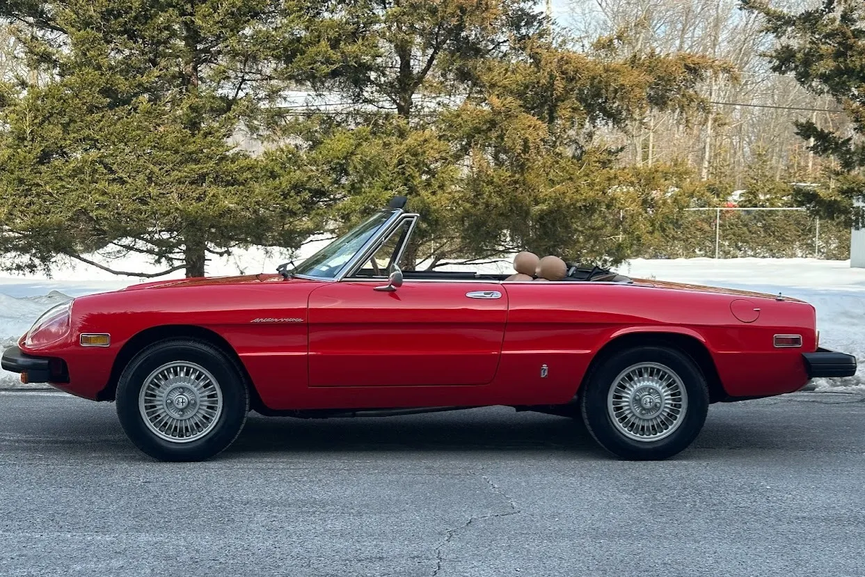 This 1981 Alfa Romeo 2000 Spider Veloce underwent a multi-year refurbishment under previous ownership and was acquired by the current owner in 2015. Finished in Rosso over Biscuit leather, the car is powered by a 2.0L twin-cam inline-four linked to a five-speed manual transmission and a limited-slip differential. Equipment includes a tan soft top as well as SPICA mechanical fuel injection, a Darstan tubular header, a Magnaflow muffler, KYB dampers, disc brakes, 14″ Campagnolo magnesium wheels, headlight covers, black bumpers, a cabin heater, a VG Hellebore steering wheel, and power windows. This Spider is offered at no reserve on dealer consignment in New Jersey with parts and service invoices and a clean Maryland title.