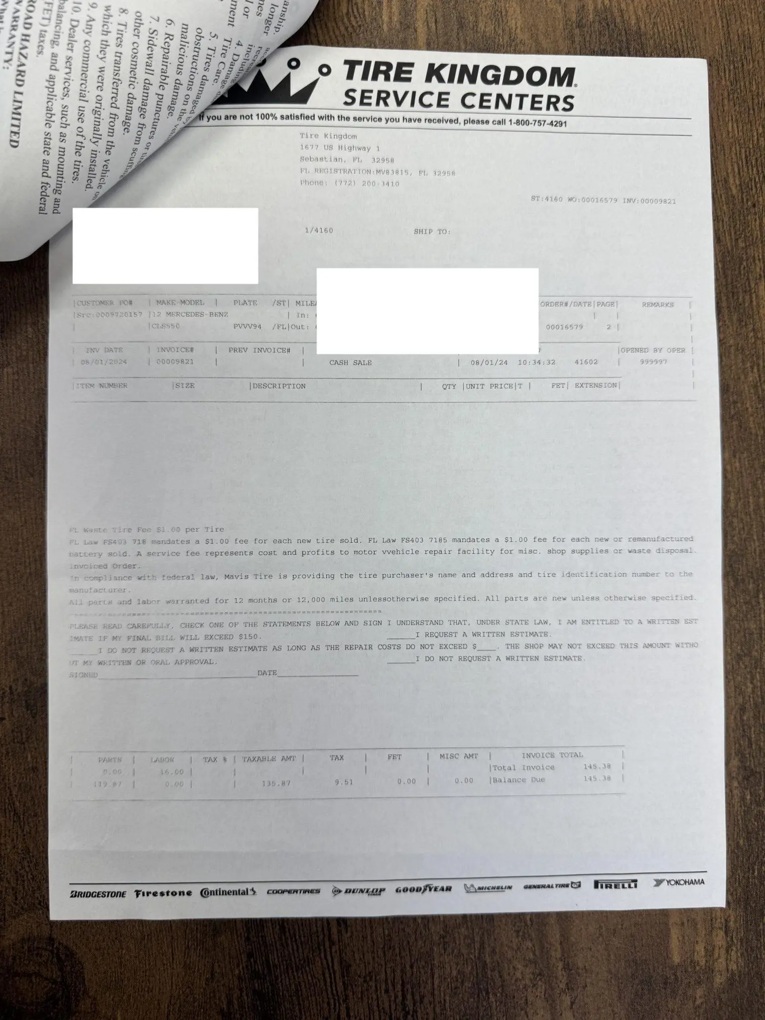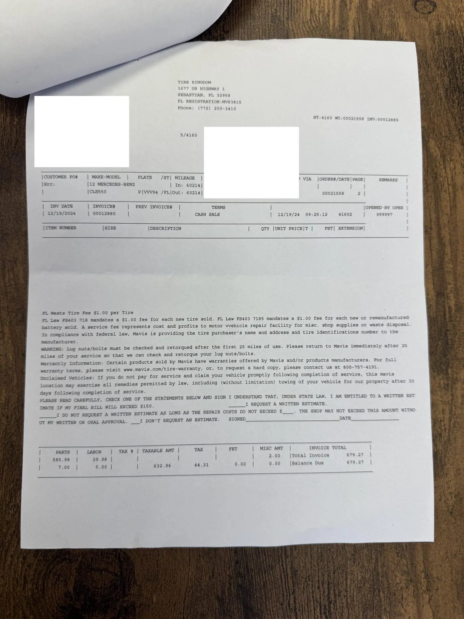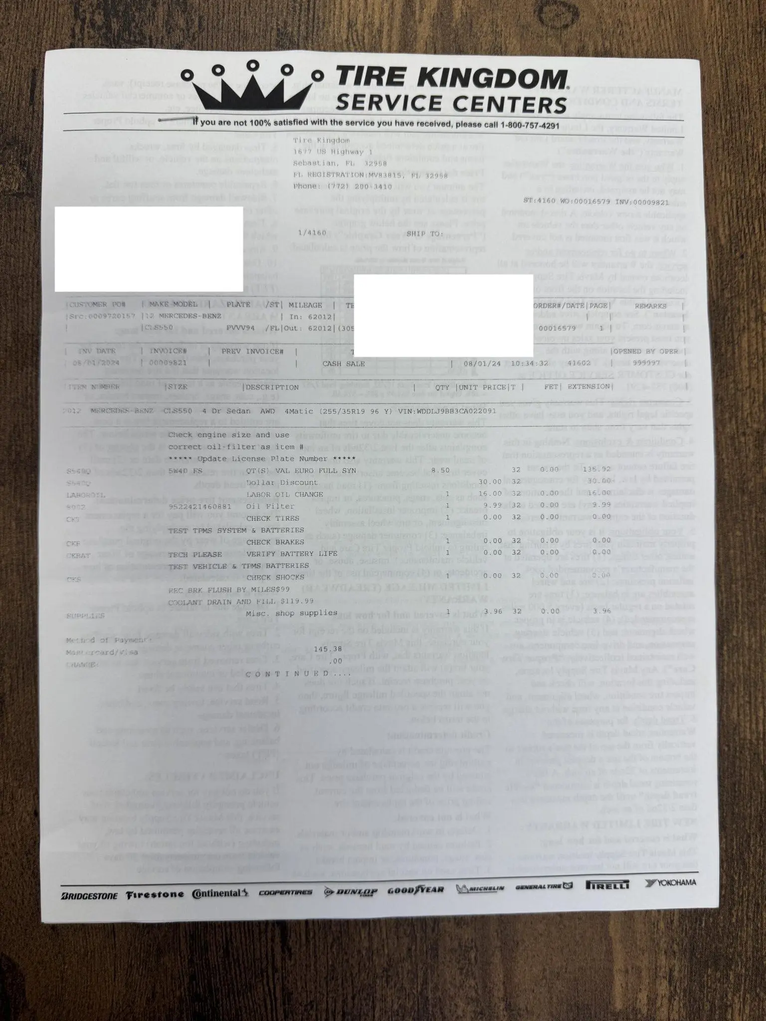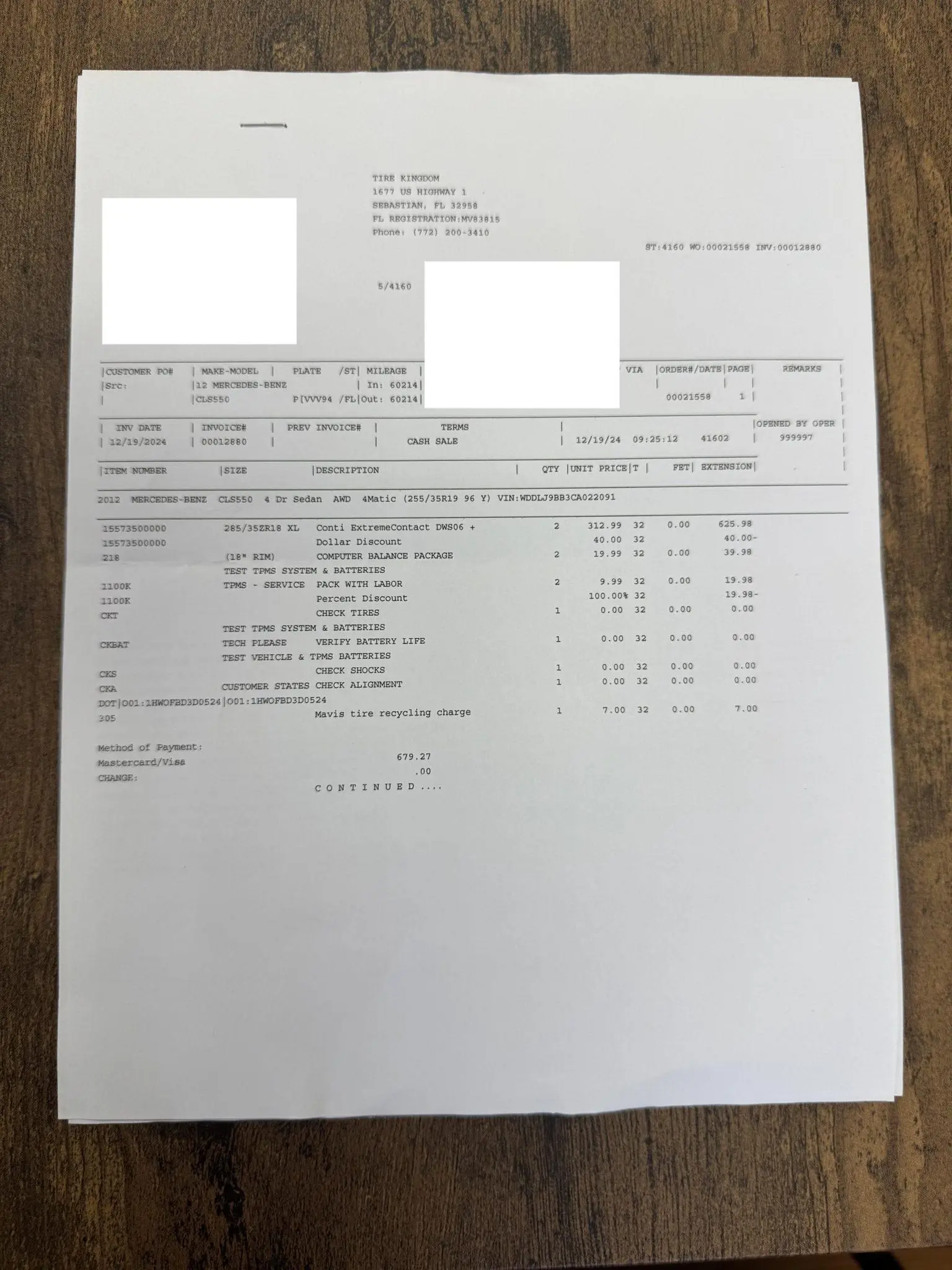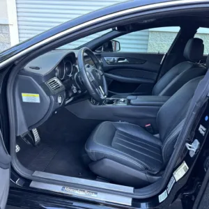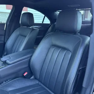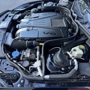 The 18″ five-spoke AMG wheels are mounted with Continental tires. The car is equipped with Electronic Stability Control as well as an AIRMATIC air suspension with four-wheel level control and an Adaptive Damping System (ADS). Stopping power is provided by cross-drilled front and ventilated rear rotors. Two tires were replaced in December 2024, and multiple wheels have curb damage.