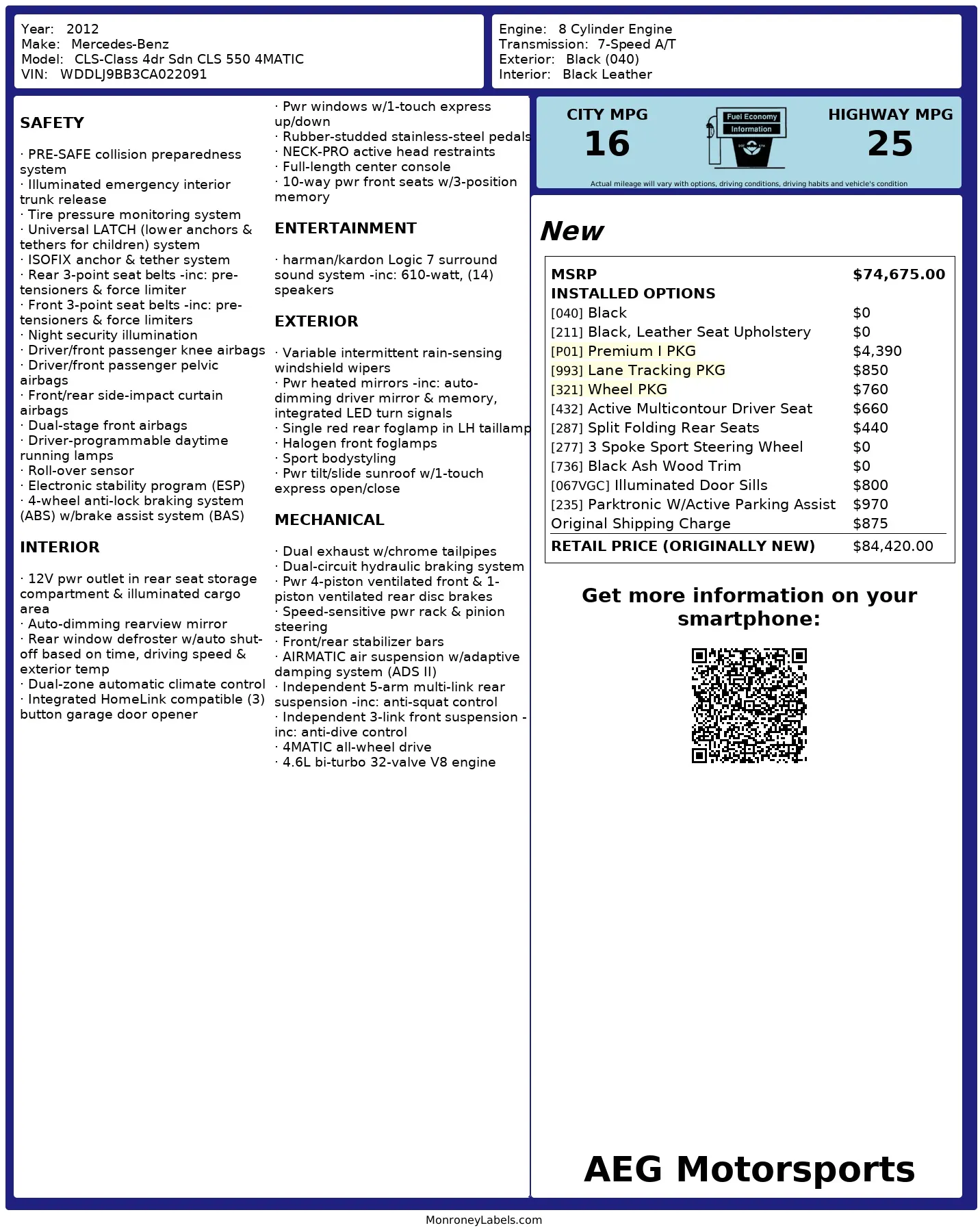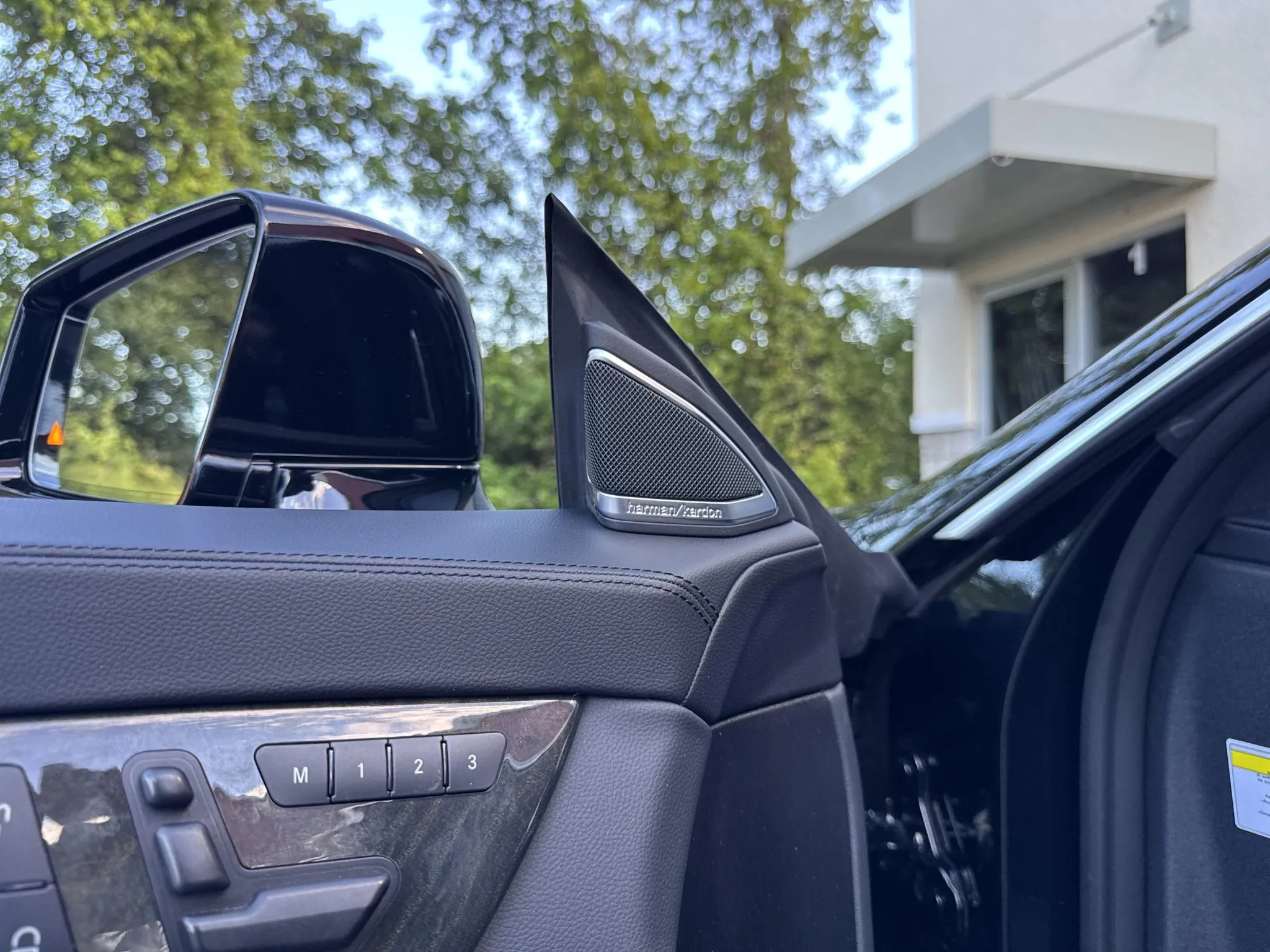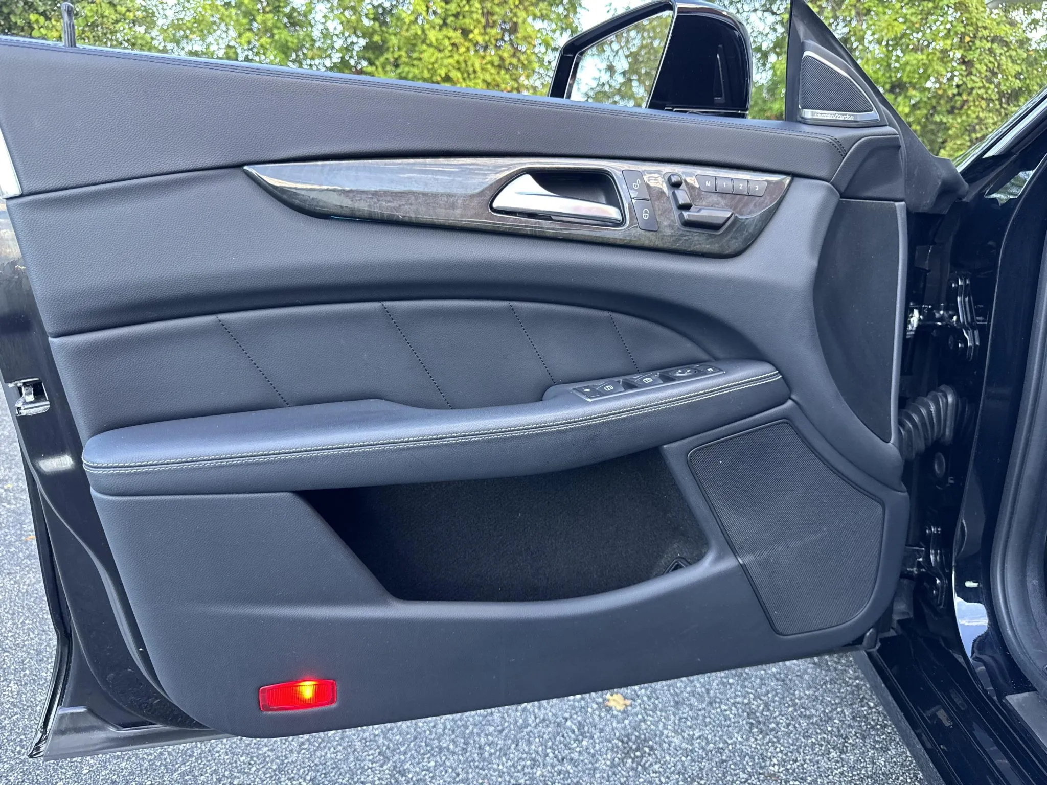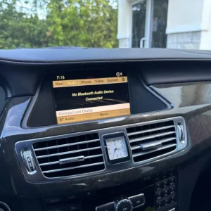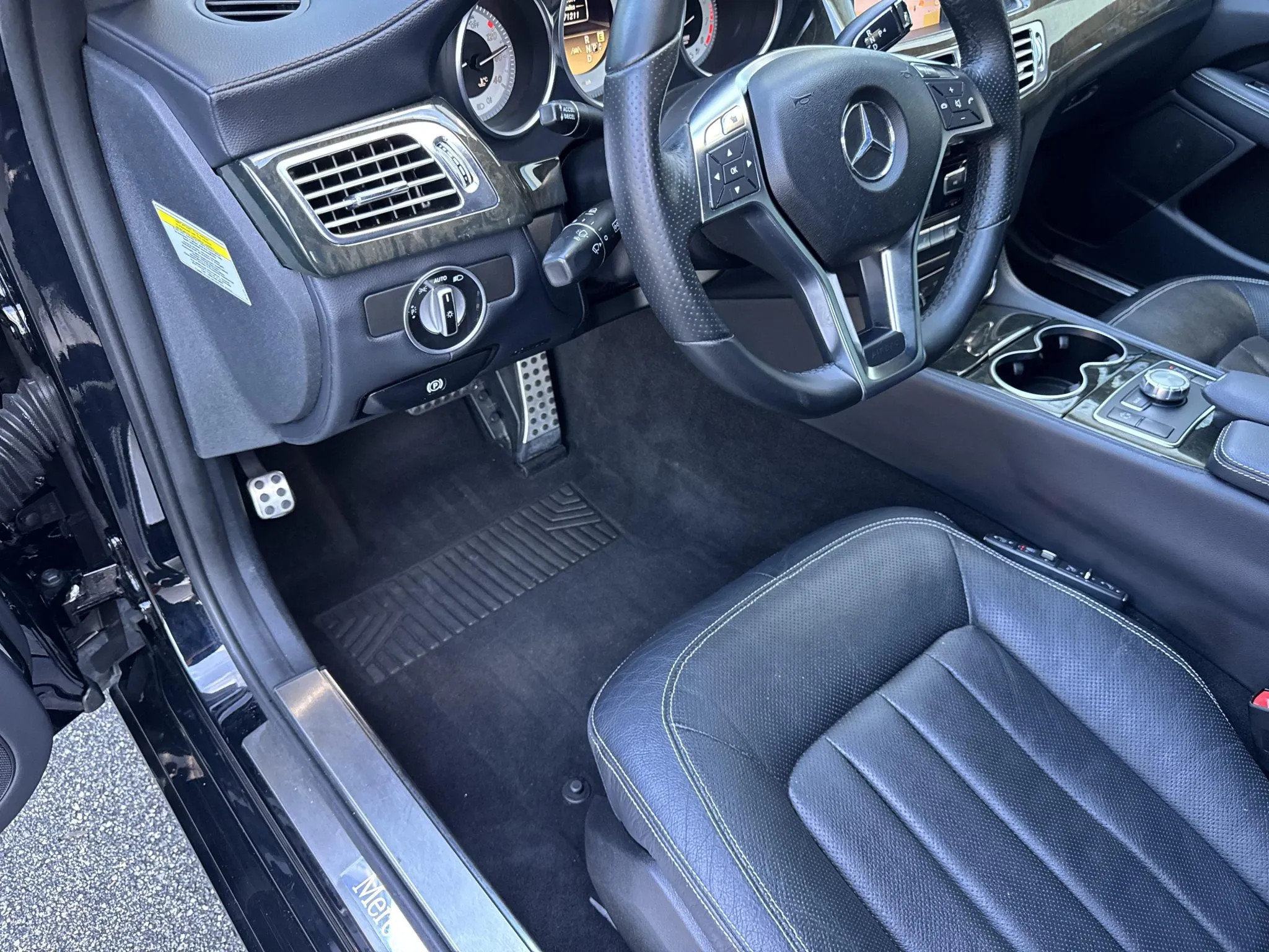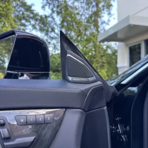 The heated and ventilated power-adjustable front seats are upholstered in black leather, while wood trim accents the cabin. Additional appointments include front seat position memory, Keyless Go, a rearview camera, dual-zone automatic climate control, ambient lighting, a Harman Kardon sound system, and COMAND infotainment with navigation.