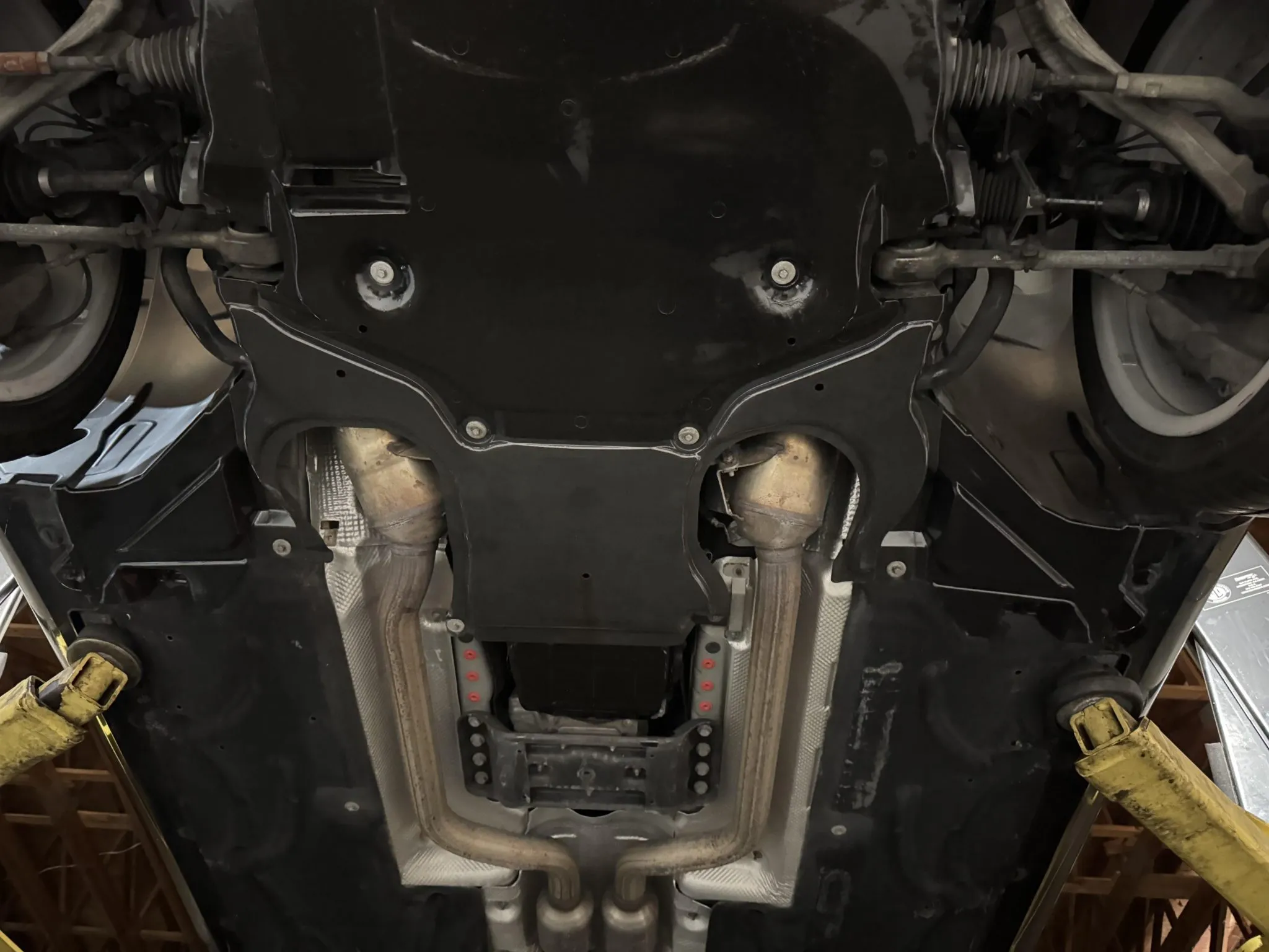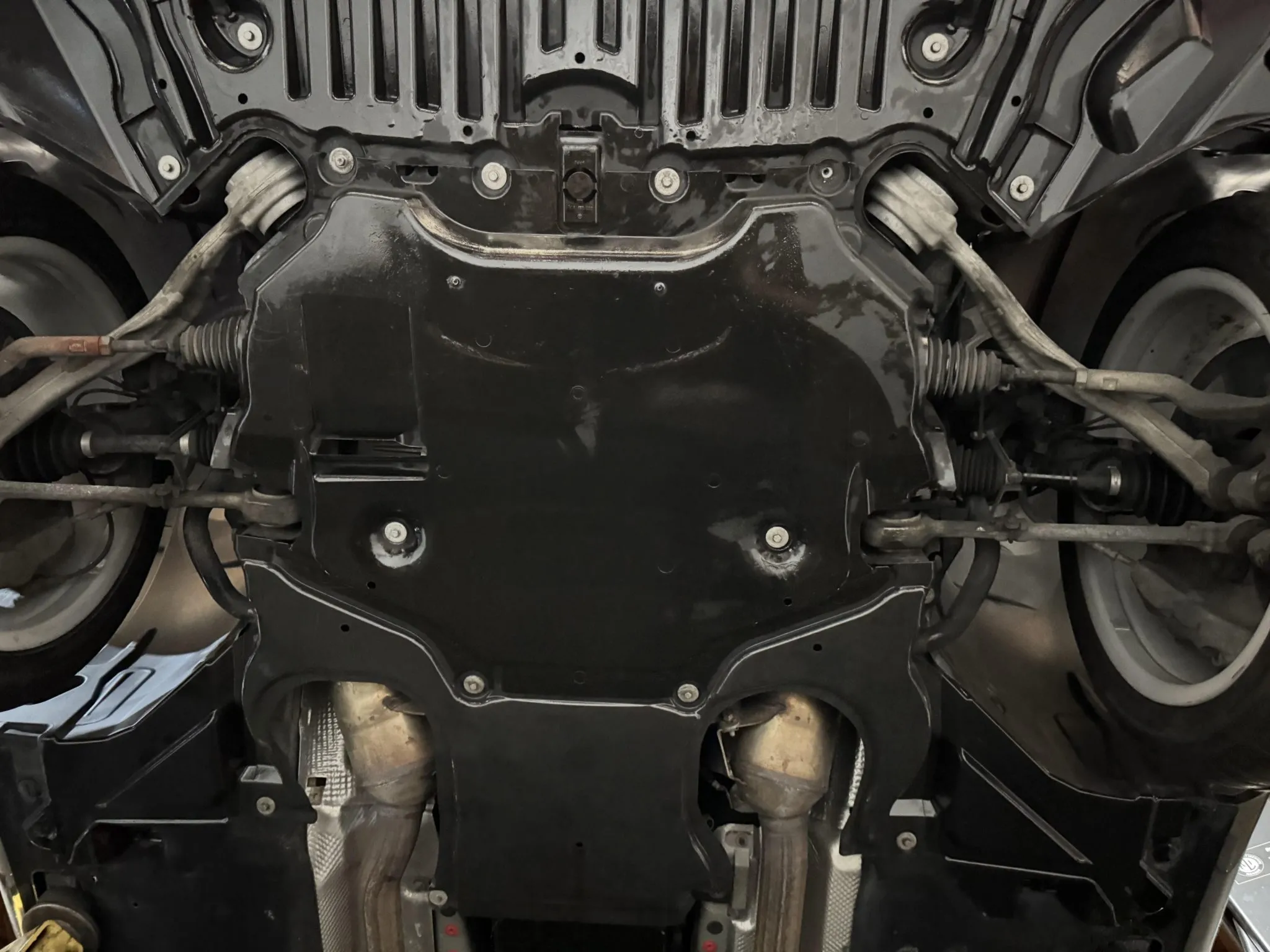 Power is delivered to all four wheels through a 7G-Tronic seven-speed automatic transmission and a 4MATIC all-wheel-drive system. Additional photos of the underside are provided in the gallery.