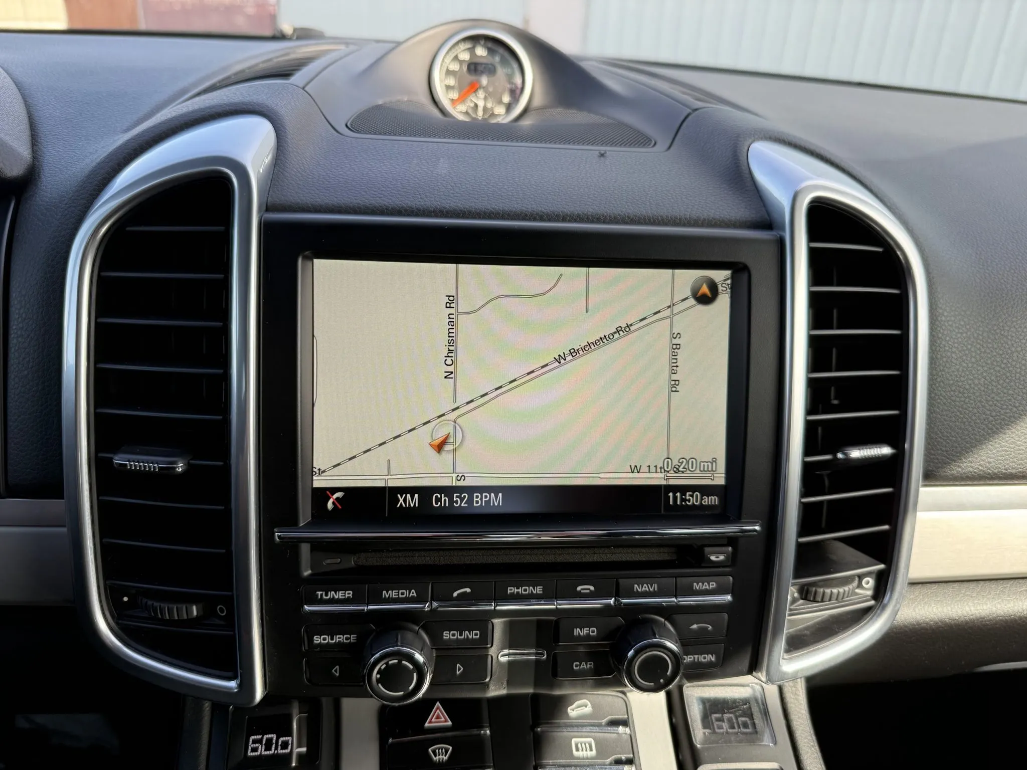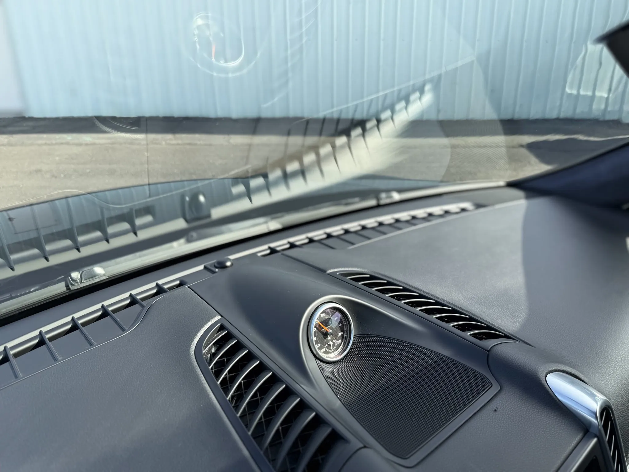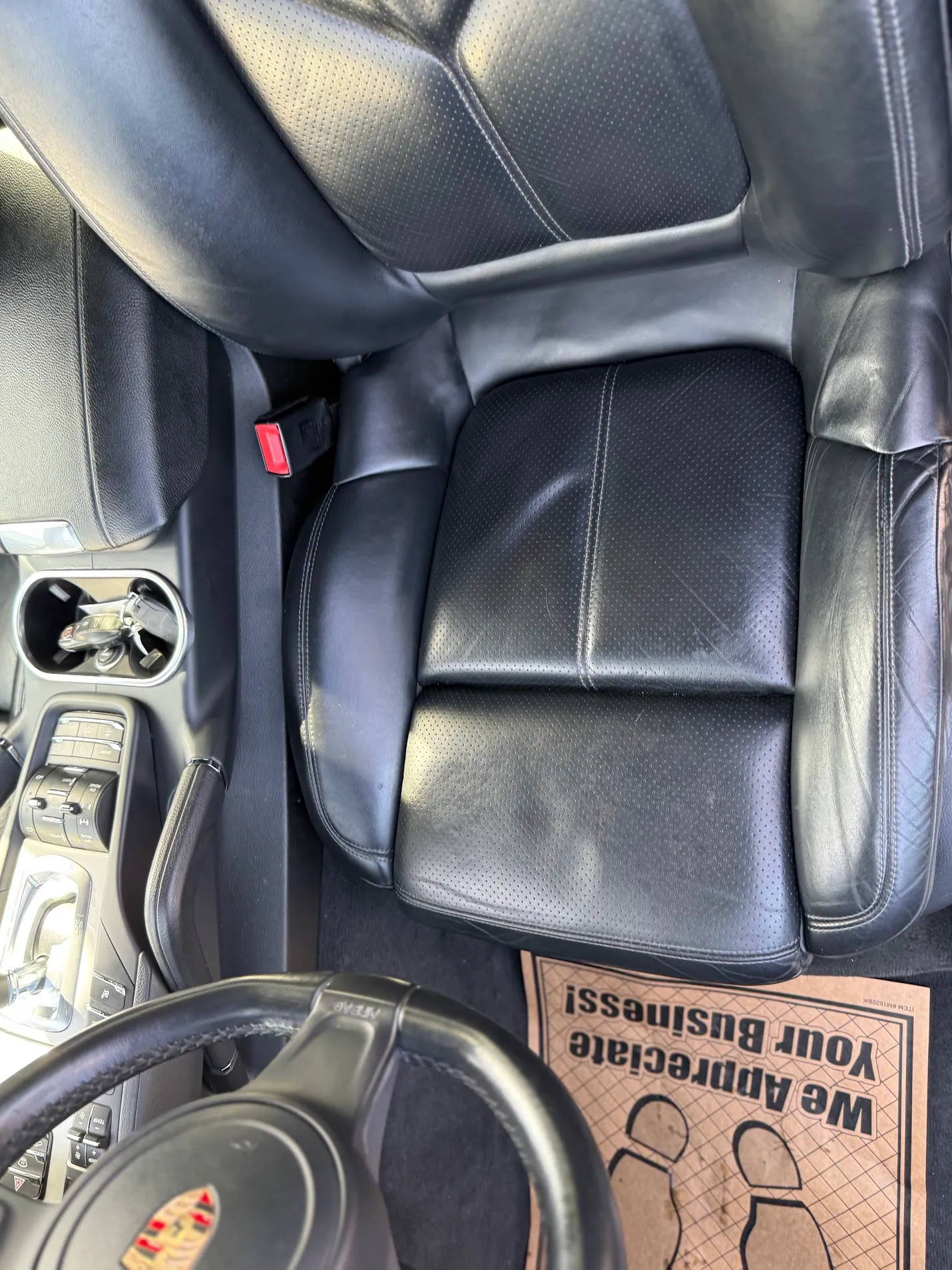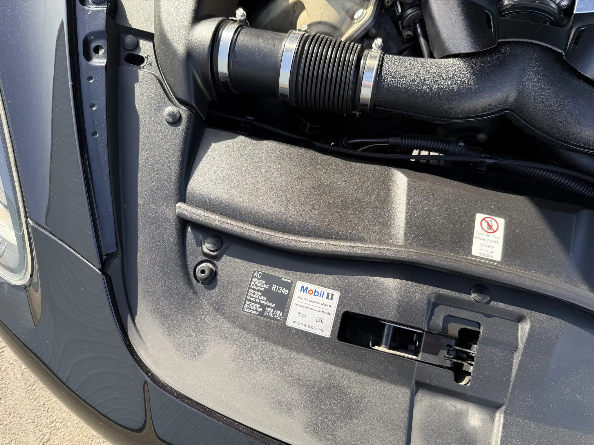 The heated 14-way power-adjustable front seats and the rear bench have debossed Porsche crests on the headrests and are upholstered in Black leather. Amenities include a Bose surround-sound system, Porsche Entry & Drive, a back-up camera, Lane Change Assist (LCA), dual-zone automatic climate control, front-seat memory settings, and Porsche Communication Management (PCM) with navigation. Blower motor repairs are noted in the Carfax report in May 2022.