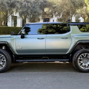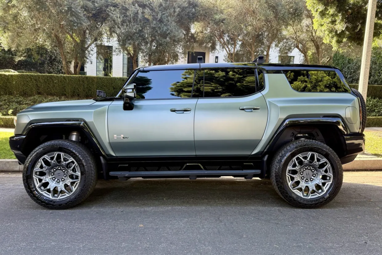 This 2024 GMC Hummer EV SUV is an Edition 1 example finished in Moonshot Green Matte over Lunar Shadow vinyl upholstery, and its Ultium Drive e4WD system is linked to an Ultium 20-module battery pack and sends power to all four wheels via a single-motor front unit with an electronic locking differential as well as a dual-motor rear axle with virtual locking capability. Features include a TentBox rooftop tent, an Infinity Roof with removable transparent panels, an air-ride adaptive suspension, CrabWalk four-wheel steering, 22″ eight Y-spoke alloy wheels, heated and ventilated front seats, heated rear seats, Super Cruise driver assistance, tri-zone automatic climate control, surround-view cameras, and a Bose sound system. Purchased new by the current owner, this Hummer EV has 8k miles and is offered by the seller on behalf of the owner with an owner’s manual, a clean Carfax report, and a clean California title.
