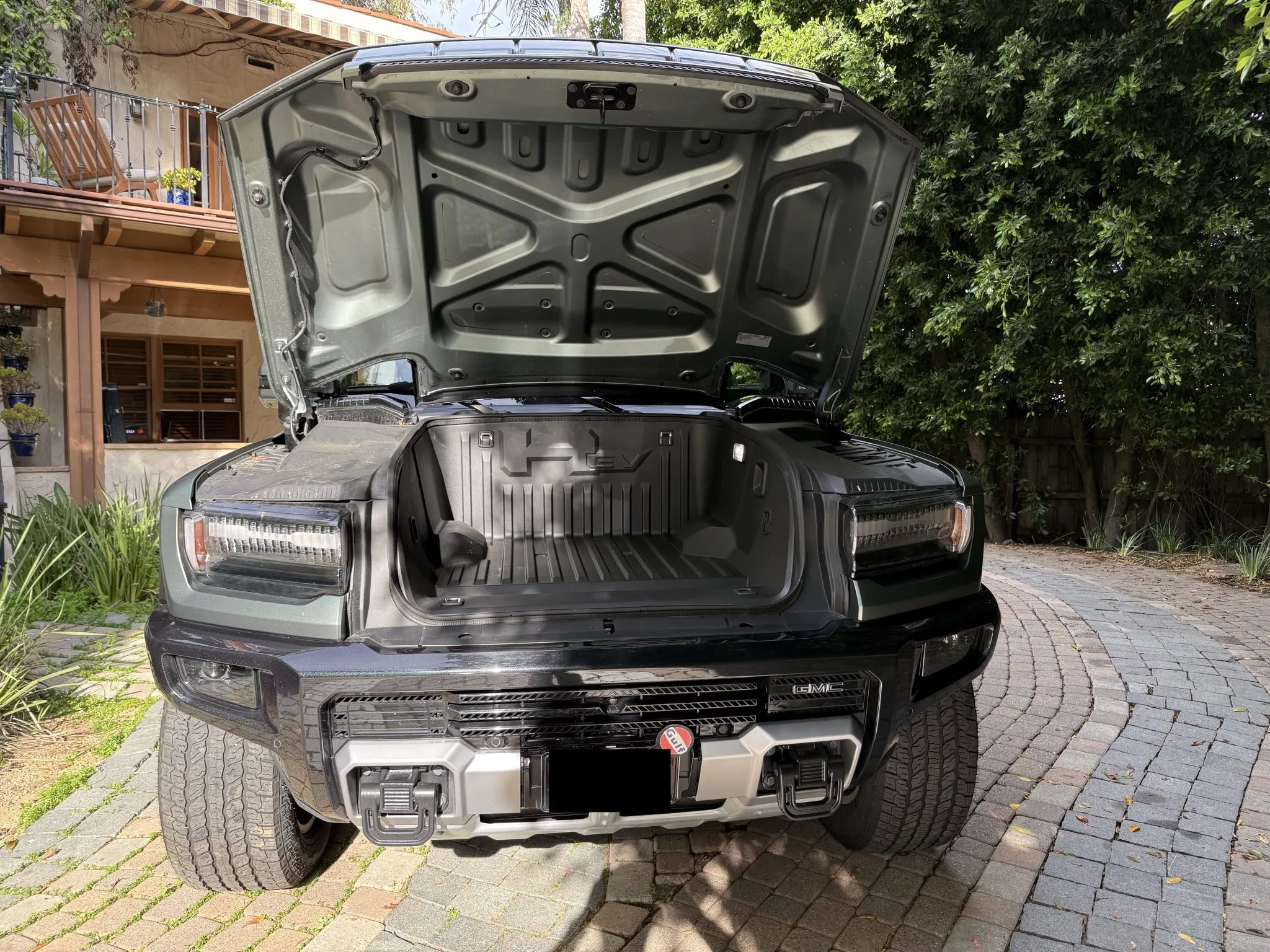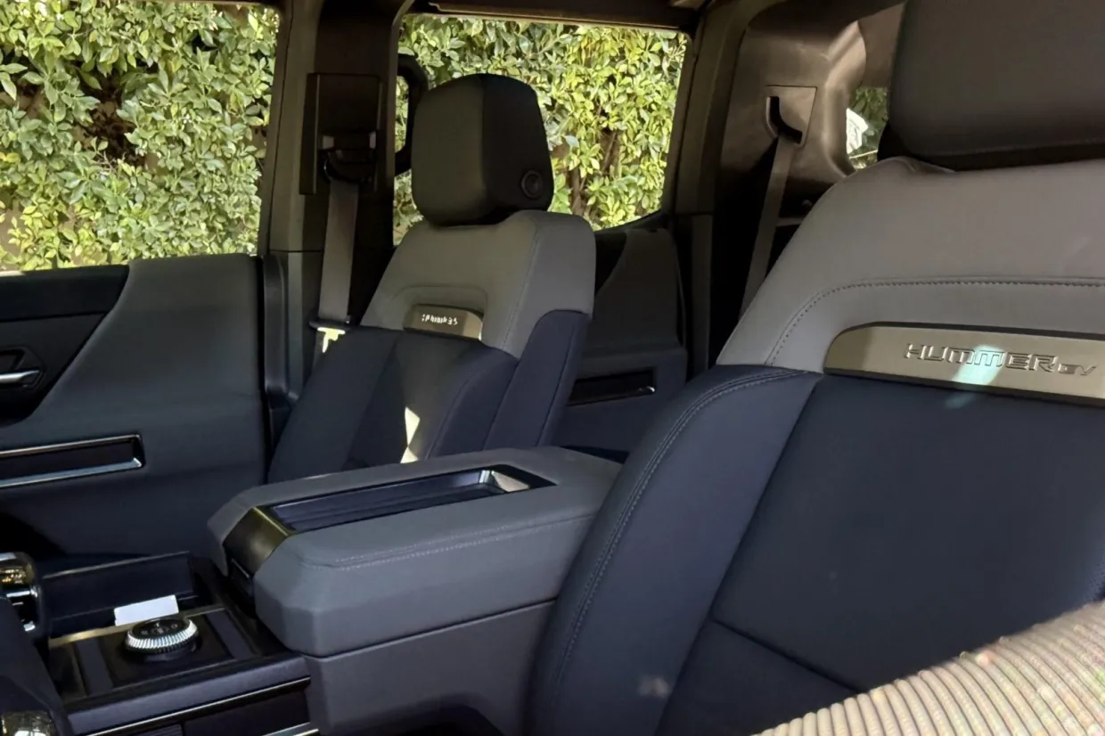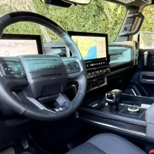A single-motor front-drive unit with a 13.3:1 fixed gear ratio is housed with an electronic locking differential, while a rear-axle unit with a fixed 10.5:1 ratio incorporates two motors that can be synchronized to simulate a locking differential. Factory-rated output was 830 horsepower. The Ultium battery pack is composed of a 20-cell, 170.0-kWh liquid-cooled lithium-ion battery.