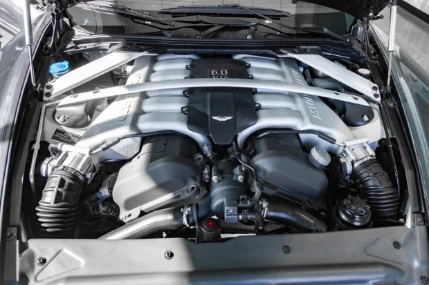 The 5.9-liter DOHC V12 was factory rated at 450 horsepower and 420 lb-ft of torque. The oil was changed in September 2025, and the selling dealer tells us that the battery and air filters were recently replaced along with the fuel level sensor, pressure regulator, and pumps.