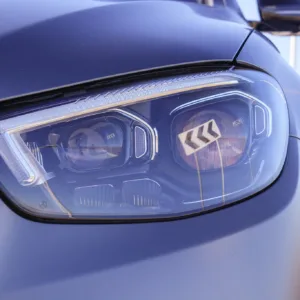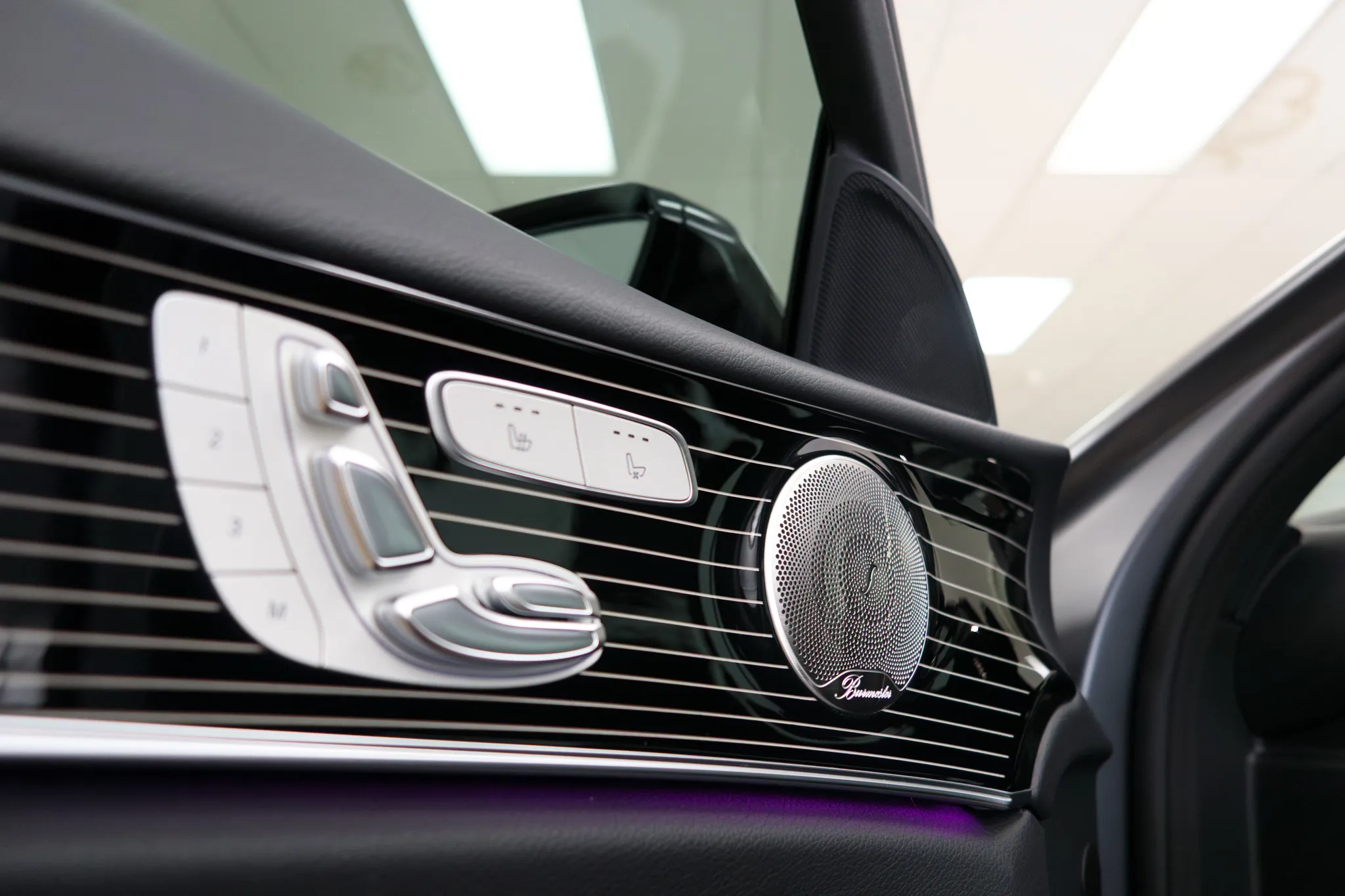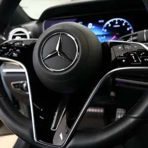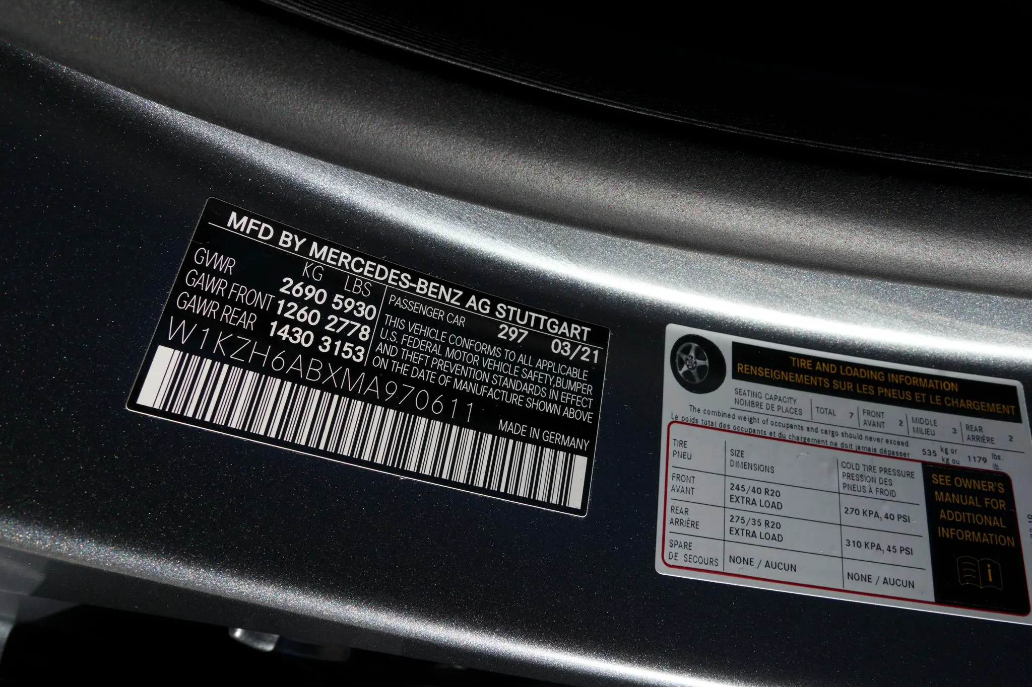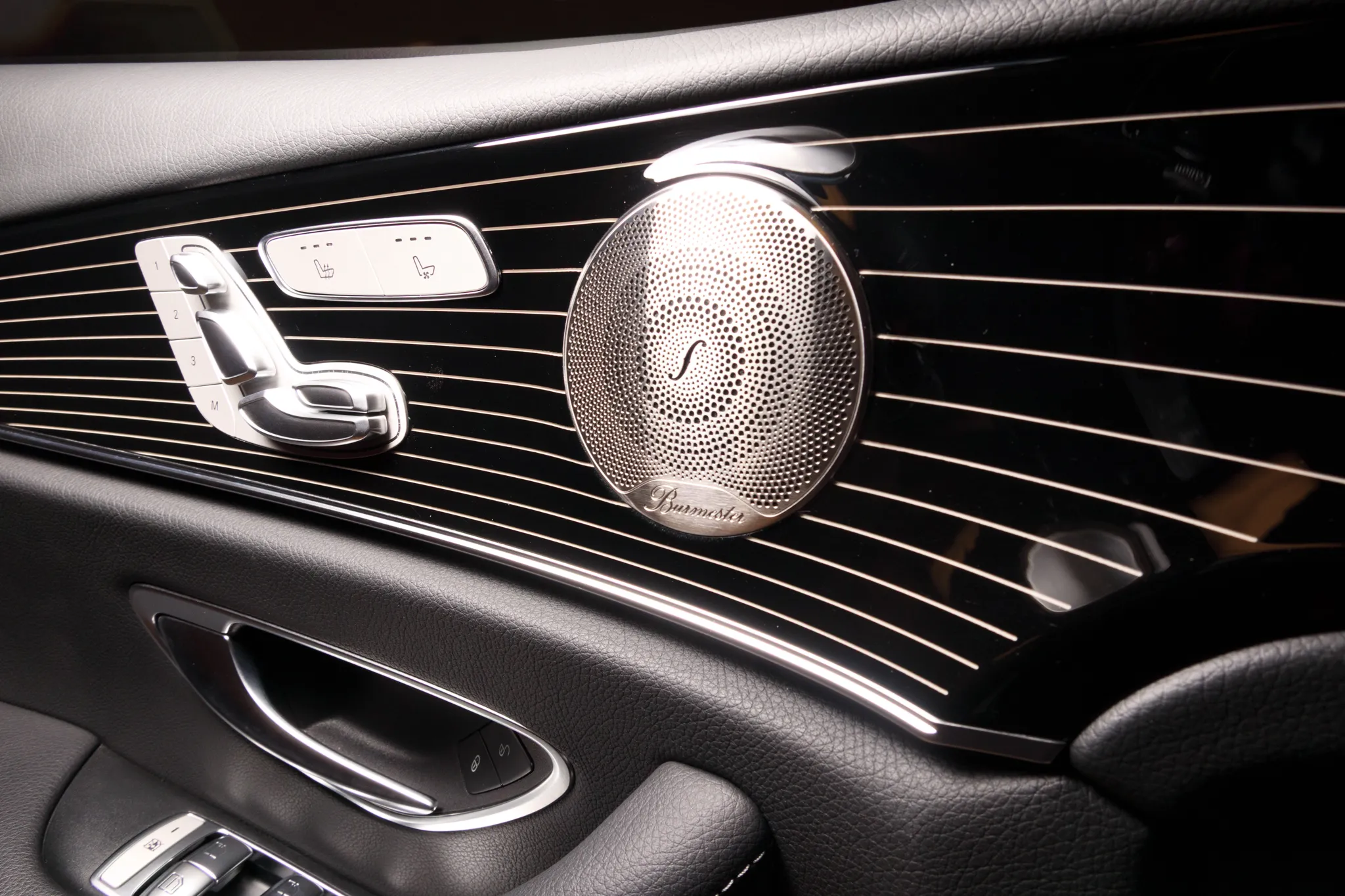 The heated and ventilated front seats and heated rear seats are trimmed in Black leather (201), and Designo Piano Black Flowing Lines wood trim (H16) adorns the cabin, while the Warmth & Comfort, Sun Protection, Acoustic Comfort, and Premium packages together provided a Burmester surround sound system, heated armrests, side-window sunshades, and additional cabin insulation. Further interior amenities include an Air Balance system, three-zone automatic climate control, Keyless go keyless entry, Attention Assist, Voice Control, and MBUX infotainment with Augmented Video for Navigation as well as Apple CarPlay and Android Auto connectivity.