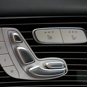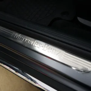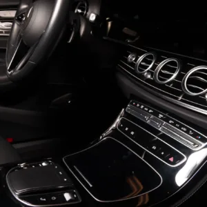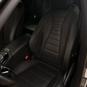 The heated leather-trimmed steering wheel is equipped with paddle shifters and frames a 12.3″ configurable digital instrument display. The Driver Assistance Package added Active Distance Assist Distronic, Active Steering Assist, Active Lane Change Assist, Active Emergency Stop Assist, Active Speed Limit Assist, Active Brake Assist, Evasive Steering Assist, Active Lane Keeping Assist, Active Blind Spot Assist, and Pre-Safe Plus. The driver is further aided by a surround-view camera system and Active Parking Assist as part of the Premium Package along with an optional head-up display. The digital odometer indicates 25k miles.