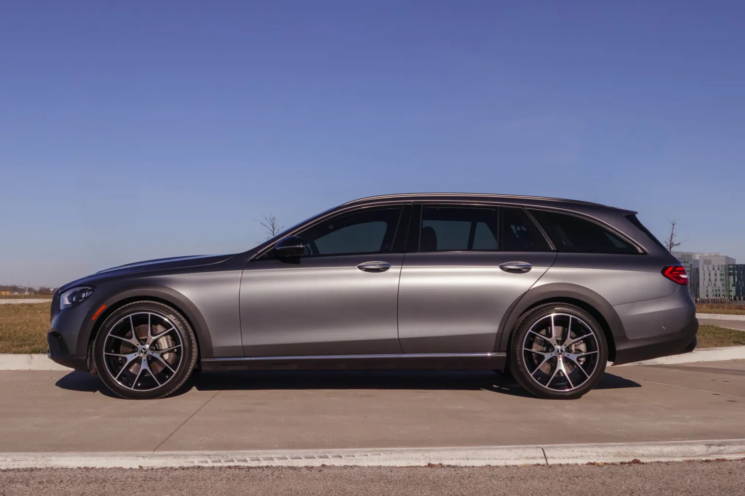 This 2021 Mercedes-Benz E450 4MATIC is an All-Terrain wagon that was purchased new by the selling dealer, who used it as their personal car, and it was ordered with over $21k in options including the Premium, Driver Assistance, Acoustic Comfort, Warmth & Comfort, Exterior Lighting, Sun Protection, and Night packages, which together provided multiple the LED Intelligent Light System, Parktronic parking sensors, a Burmester surround sound system, heated armrests, various driver aids, and high-gloss black accents for the Designo Selenite Gray Magno-finished bodywork. The car is powered by a mild-hybrid turbocharged 3.0-liter inline-six that drives all four wheels through a nine-speed automatic transmission, and further options include 20″ AMG twin five-spoke wheels, a panoramic sunroof, soft-close doors, a head-up display, three-zone automatic climate control, heated and ventilated front seats, and heated rear seats. This W213 E450 4MATIC All-Terrain wagon has 25k miles and is now offered in Missouri by the selling dealer with a window sticker, a clean Carfax report, and a clean Montana title.