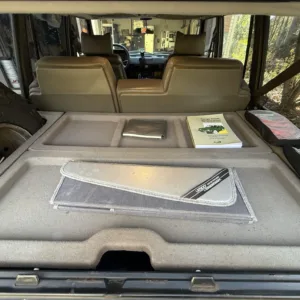The seller tells us that a refurbished four-speed automatic transmission was installed under current ownership, along with an LT230 two-speed transfer case, heavy-duty 24-spline axles, and an ARB onboard air compressor linked with Ashcroft front and rear lockers. Additional photos of the underside condition are viewable in the gallery below.