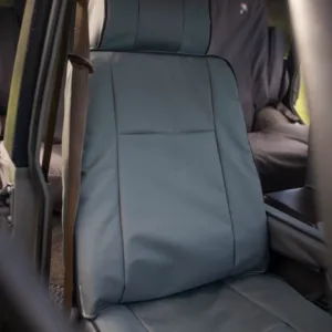 The cabin features power-adjustable front seats upholstered in Winchester Gray leather, which extends to the armrests. The seller tells us that Second Skin sound insulation has been installed, and front and rear seat covers have added along with a WeatherTech rear cargo area mat, and Blue Ridge overland storage bags for air compressor accessories. Additional appointments include cruise control, an analog clock, wood veneer trim, air conditioning, an Alpine Bluetooth stereo, and a magnetic phone mount on the dashboard. The trim around the shifter is lifted near the console cupholder, and additional photos of the interior condition are viewable in the gallery below.