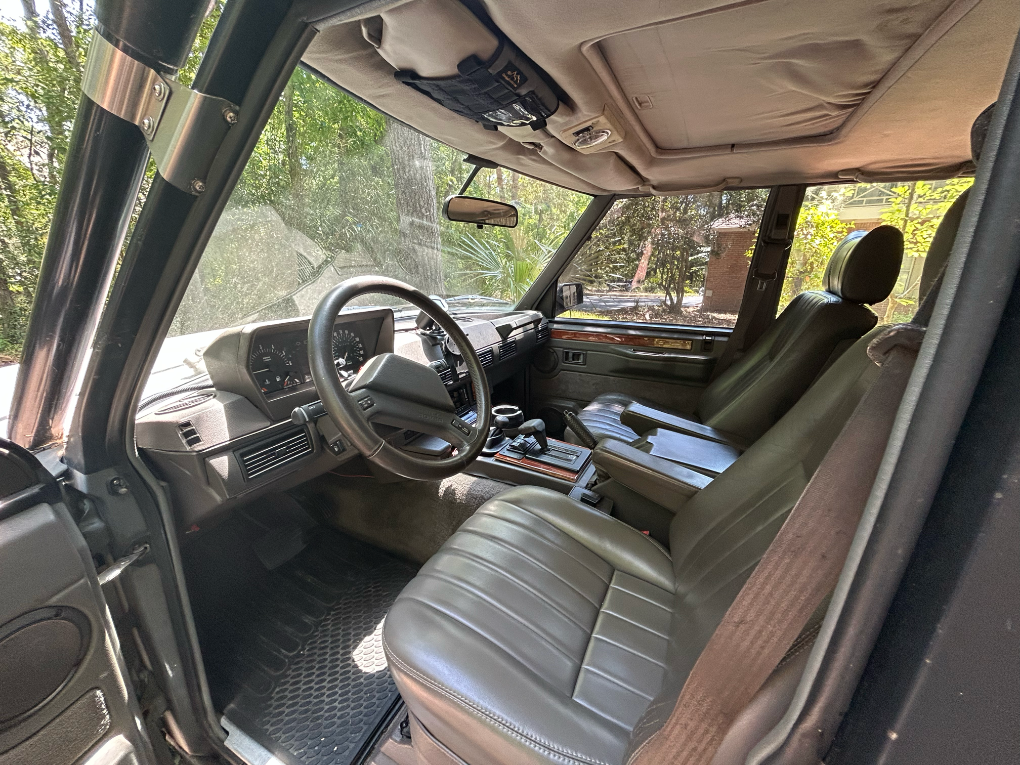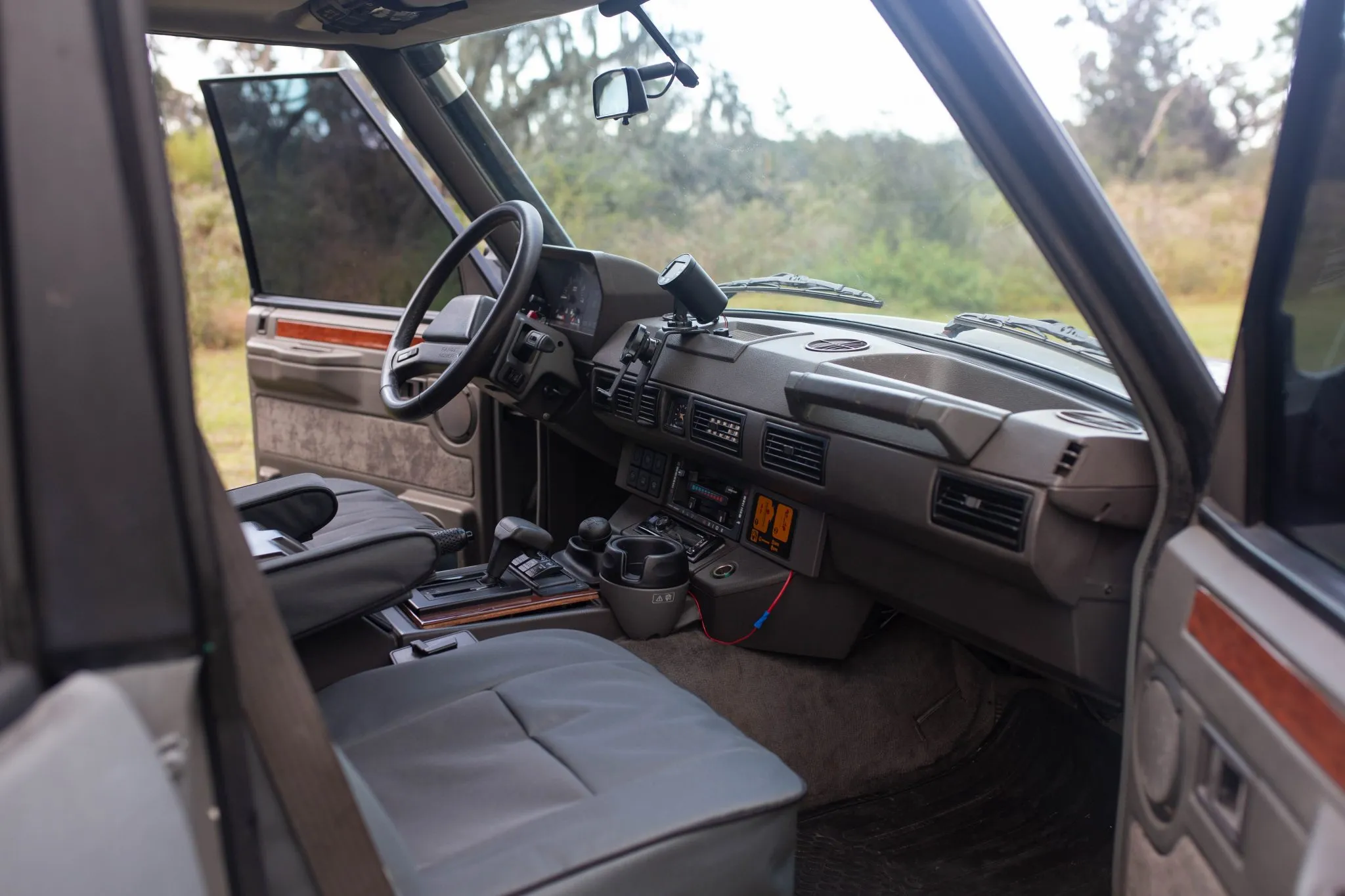 This 1992 Land Rover Range Rover was registered in California, Oregon, Colorado, and Florida before it was acquired by the seller in 2022, and it was subsequently re-powered with a 2.5-liter 300Tdi turbodiesel inline-four. Additional modifications include an LT230 two-speed transfer case, heavy-duty axles and front brakes, an ARB onboard air compressor, Ashcroft front and rear air-lockers, a Fourby dual-inlet manifold, a Madman EMS3 display, an ARB front bumper, a Smittybilt winch, a roof rack, and LED lights. Finished in Pembroke Gray over Winchester Gray leather, the truck is equipped with a replacement four-speed automatic transmission, a sunroof, 16″ steel wheels, power-adjustable front seats, cruise control, an Alpine Bluetooth stereo, and air conditioning. This Range Rover shows 182k miles and is now offered at no reserve with an owner’s manual, a British Motor Industry Heritage Trust certificate, a Carfax report, and a clean Florida title in the seller’s name.