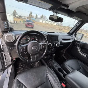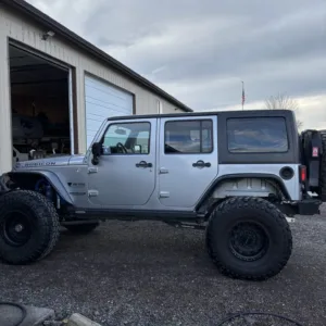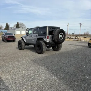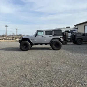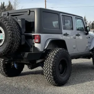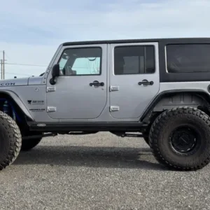 This 2013 Jeep Wrangler Unlimited Rubicon was modified under prior ownership with the installation of a 6.2-liter LS3 V8, 2.72:1 transfer-case gearing, and Dana Spicer 60 axles with ARB Air Lockers along with 17″ Vision wheels, 40″ Nitto tires, a Rebel Off Road suspension kit, a Currie Currectlync steering system, and a Fox steering stabilizer. Finished in Billet Silver Metallic over black leather upholstery, the truck is further equipped with a five-speed automatic transmission, a removable hardtop, Smittybilt bumpers, a front winch, a hitch receiver, an ARB onboard compressor, removable doors, powered side steps, an auxiliary fuel tank, cruise control, heated front seats, power windows and locks, and air conditioning. The vehicle was registered in Utah and Oregon prior to being purchased by its current owner in 2023, and the odometer now indicates 27k miles. This modified JK Wrangler is offered by the seller on behalf of its owner with build and service records, a damage-free Carfax report, and a clean Oregon title in the owner’s name.